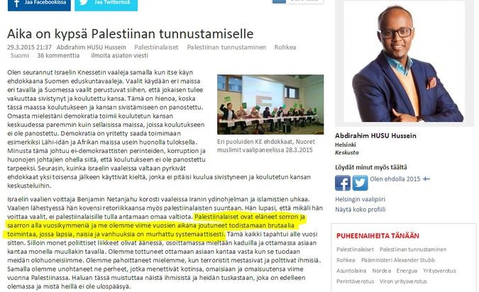 «В последние несколько лет мы являемся свидетелями жестоких акций, в ходе которых систематически уничтожаются дети, женщины и старики. Последнюю такого рода акцию мы наблюдали летом прошлого года», — утверждает уроженец Сомали Хусейн, который иммигрировал в Финляндию в 1994 году.