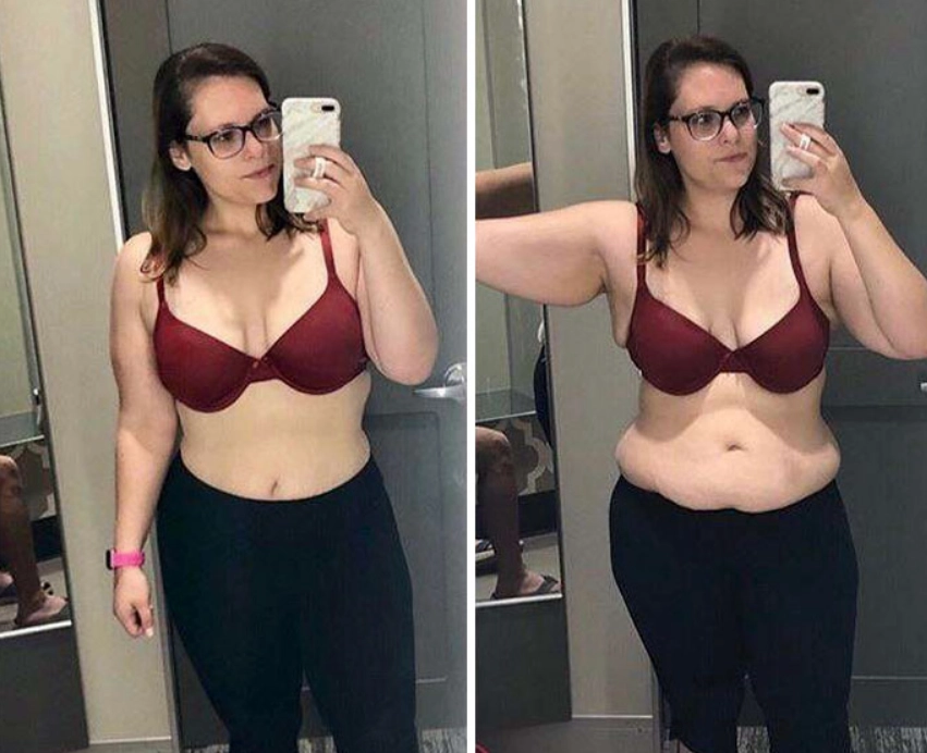 Эта девушка поделилась своими снимками после беременности: 1 фото — живот подтянут, 2 фото — живот расслаблен