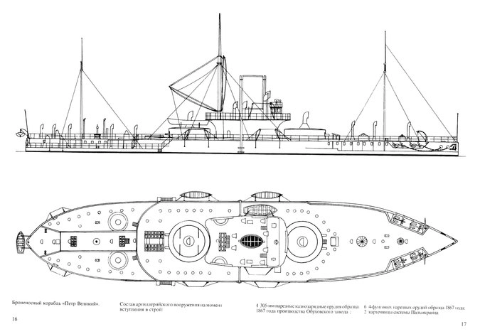 Войны, по счастью, не случилось, но на «Петре Великом» сразу же были выявлены существенные недочеты. Главным из них была недостаточная мощность двух трехцилиндровых машин, которые обеспечивали его ход. Дело было в недостаточной паропроизводительности котлов. В 1870 году, заключая контракт на изготовление механизмов, Морское министерства решило не рисковать и не связываться с новой системой, которая позволяла использовать пар дважды и трижды. В результате, к моменту вводу в строй «Петра Великого» «обыкновенная система» уже устарела, а броненосец не мог развивать заложенную в проекте скорость в 14 узлов.