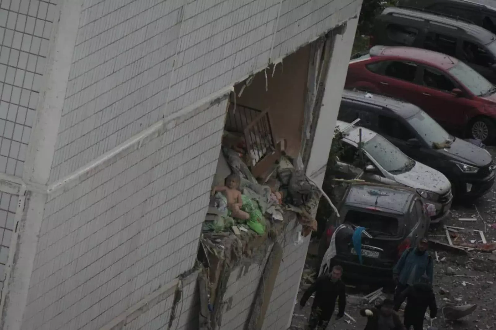 В одной из разрушенных квартир сидела перепуганная девочка. Родителей рядом с ней не было. Сотрудники МЧС уже спасли ребенка. Сообщается, что ее жизни ничего не угрожает.