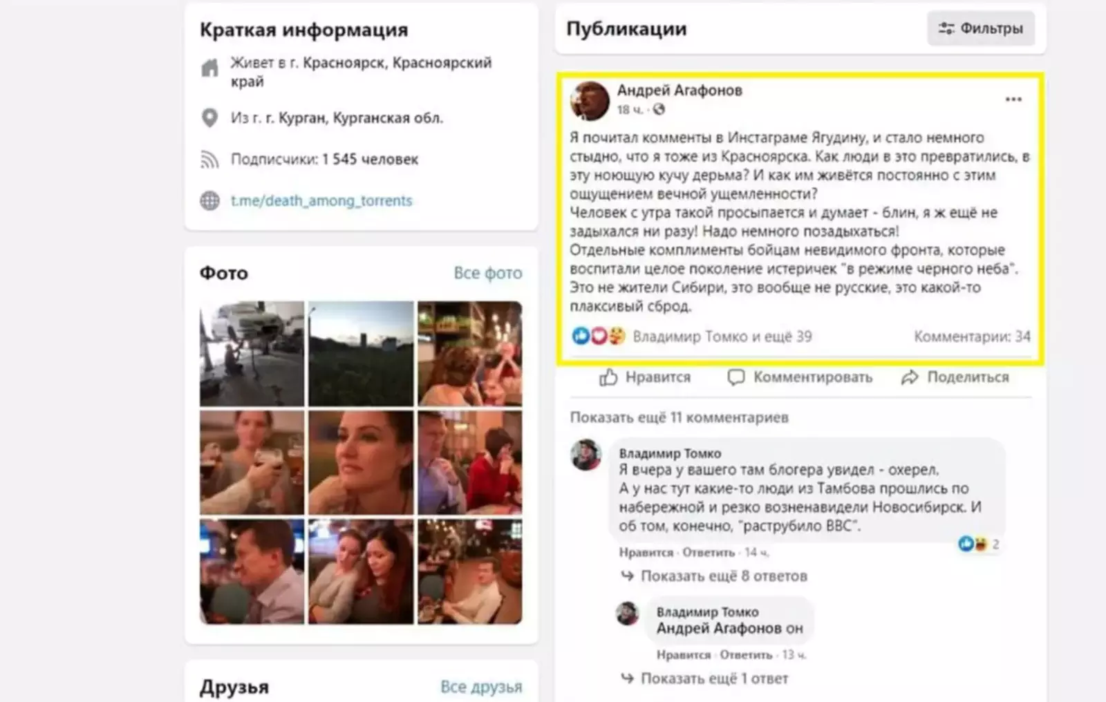 В ответ в своем Facebook выступил Андрей Агафонов, назвав местных жителей «ноющей кучей дерьма» и «плаксивым сбродом». Оскорбленные пользователи Рунета потребовали уволить советника замгубернатора за хамство, и пост Агафонову пришлось удалить. Вскоре районная прокуратура начала проверку по факту скандального поста.