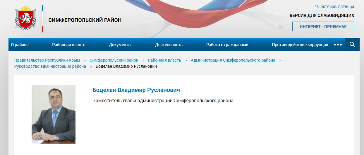 Заместителем главы Симферопольского района Республики Крым стал Владимир Боделан — бывший глава одесского областного управления МЧС Украины, занимавший эту должность во время трагедии в Доме профсоюзов 2 мая 2014 года и несколько лет находившийся в международном розыске.