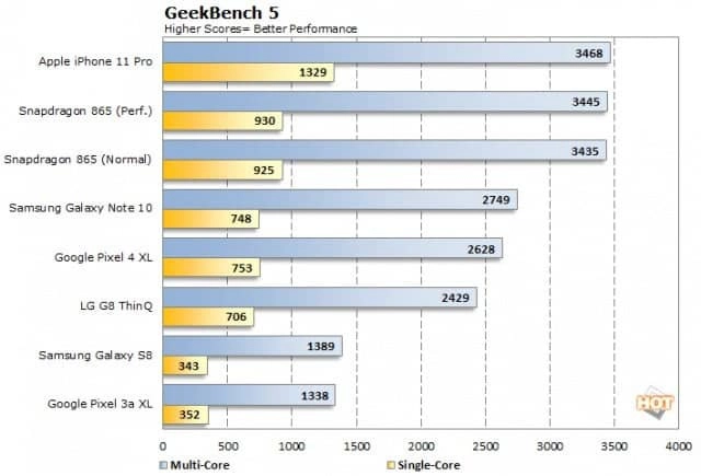 Также Apple A14 Bionic обгоняет главный процессор этого года для Android-смартфонов Qualcomm Snapdragon 865, который набирает в бенчмарке 930 и 3445 баллов соответственно, немного уступая даже A13 Bionic. Как мы видим, в одноядерном режиме процессор для Android заметно слабее решений Apple, однако уравнивает результат в многоядерном режиме за счет большего количества ядер.