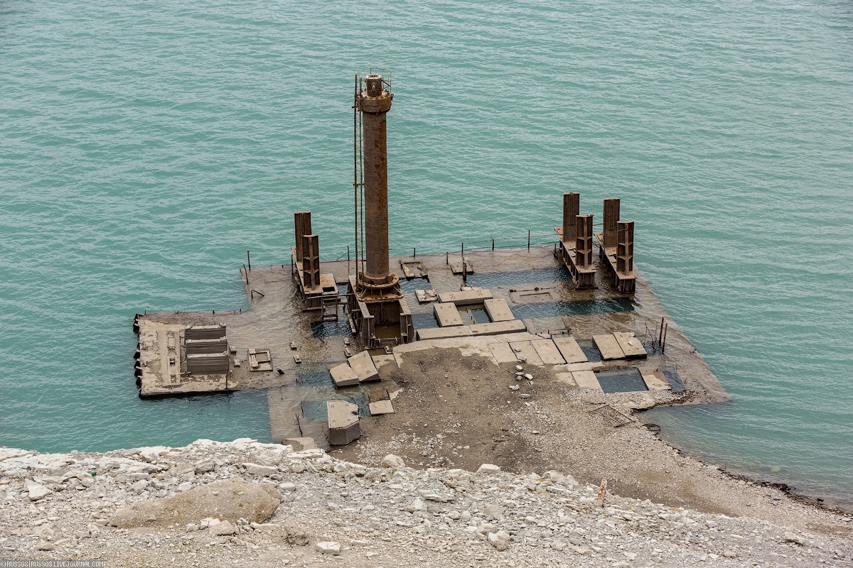 Естественно, нельзя было упустить возможность чтобы не спуститься на дно водохранилища и не посмотреть то странное сооружение.