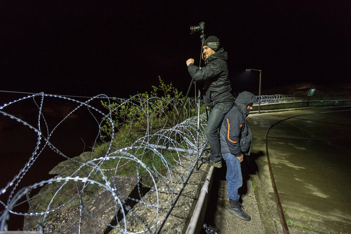 Что только не сделаешь, ради кадра и друга. Элементы колючей проволоки и одежды остались целы.