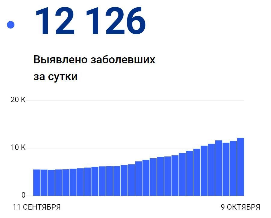 Напомним, вплоть до минувшего вторника число заражений коронавирусом в России росло двадцать дней подряд, причем особенно резкий рост был отмечен в Москве. Однако 7 октября было выявлено 11 115 случаев, тогда как сутками ранее — 11 615. 8 октября было выявлено 11 493 новых случая за сутки.