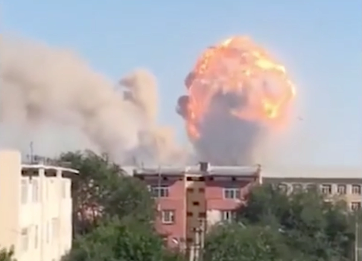 Пожар на арсенале воинской части вспыхнул 24 июня около 9:20 (6:20 МСК), после чего начали взрываться боеприпасы.