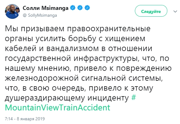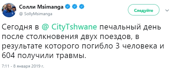 Мсиманга также передал искренние соболезнования семьям погибших и пожелал всем пострадавшим скорейшего выздоровления.
