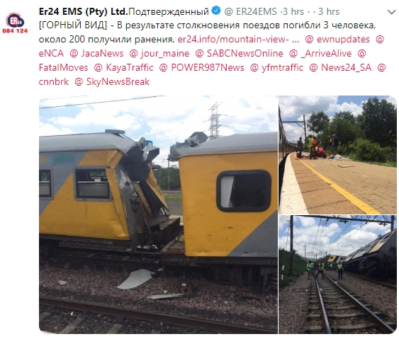 Число пострадавших в результате столкновения двух поездов в ЮАР увеличилось до 604 человек. Об этом сообщил глава столичного округа Цване Солли Мсиманга (Solly Msimanga).