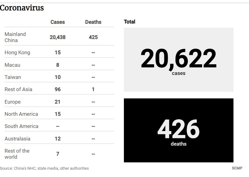 По-прежнему лишь один летальный исход зафиксирован вне территории материкового Китая. В континентальной части страны проживает и большинство заболевших — 20 438 человек.