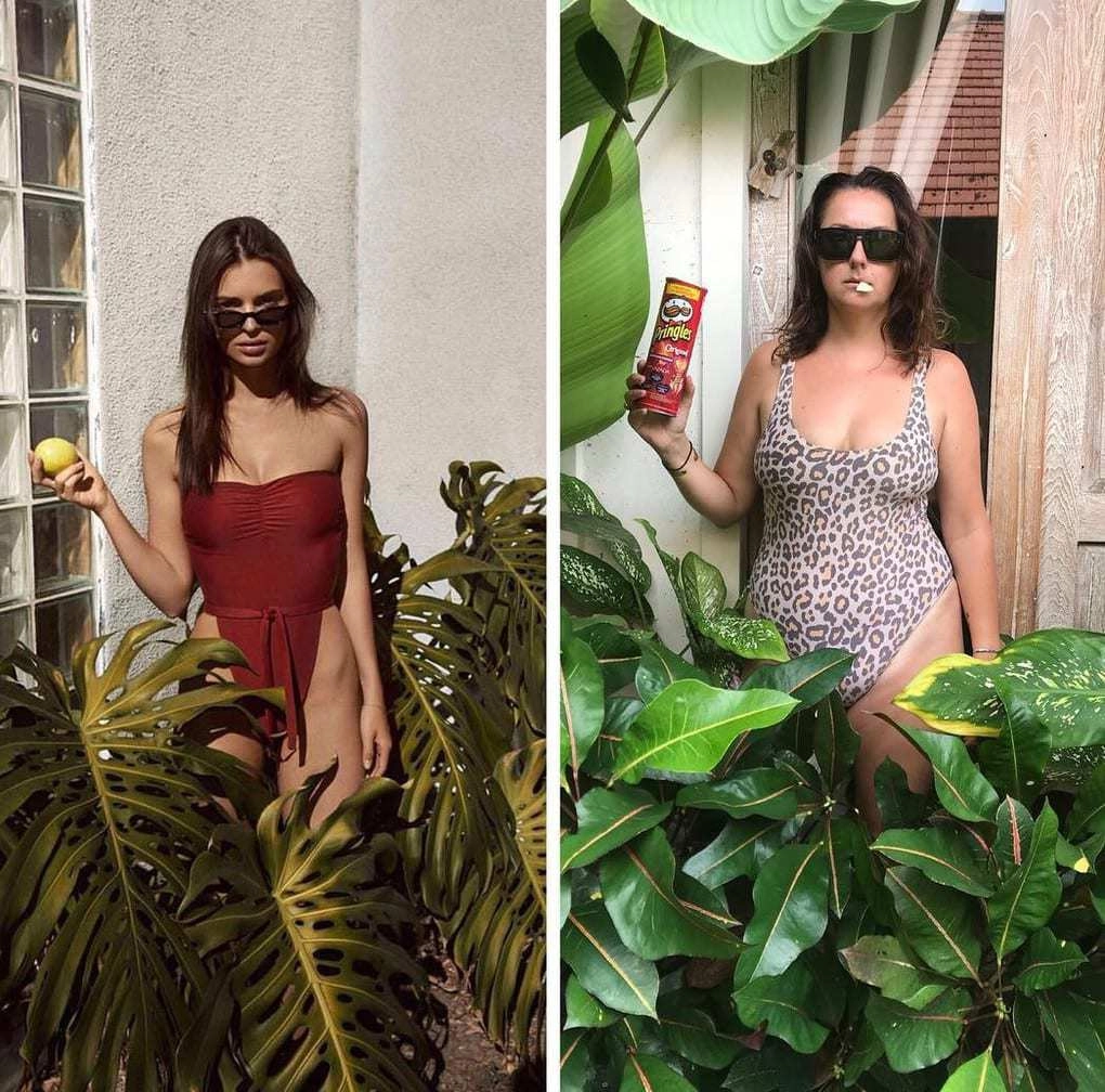И тут на помощь приходит королева пародий — австралийка Селеста Барбер (Celeste Barber), которая уже прославилась в Сети тем, что мастерски пародирует снимки популярных персон, высмеивая их искусственность и нереалистичность. И ей это прекрасно удаётся, ведь чувства юмора, иронии и харизмы этой даме не занимать. Именно поэтому за талантливой пародисткой следит уже 3,3 миллиона подписчиков.
