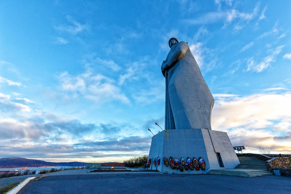 Так называют фигуру солдата в плащ-палатке, возвышающуюся над городом, это часть мемориального комплекса Защитникам Советского Заполярья в годы Великой Отечественной войны. Высота монумента составляет 42 метра, это один из высочайших памятников России.
