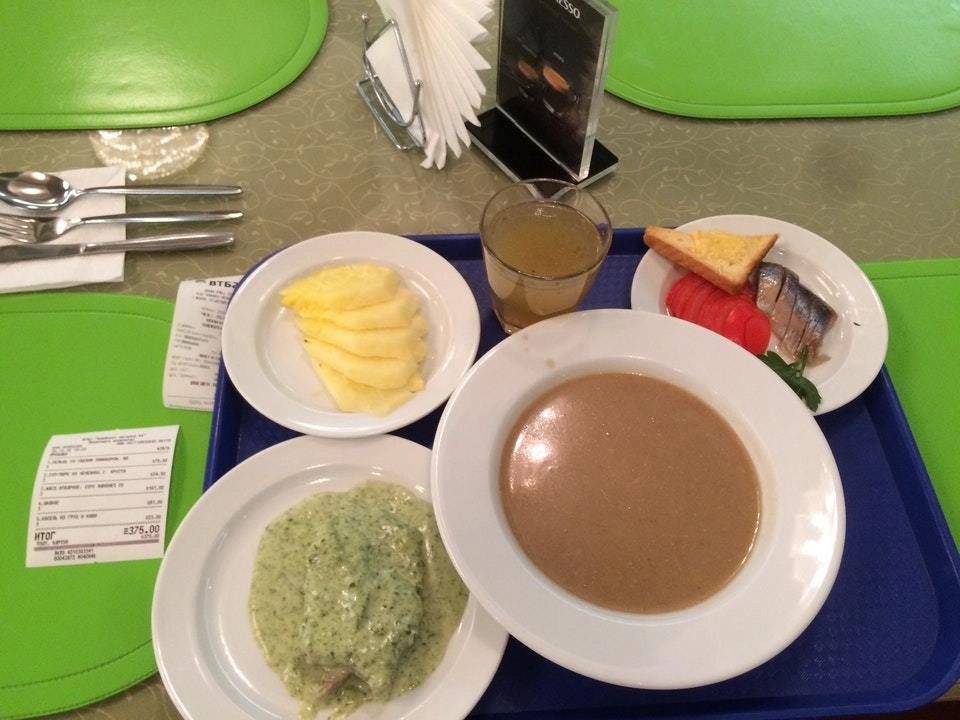 Снятый на фото обед из пяти блюд в 2015 году стоил 375 рублей.