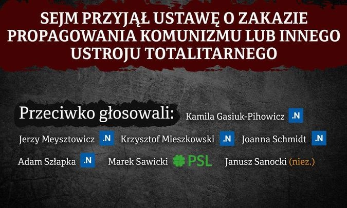 «Большинство из „Современной“ не поддержало проект о внесении изменений в закон о запрете пропаганды коммунизма. Может, новое название — „Современная ПНР“?» — пишет он.