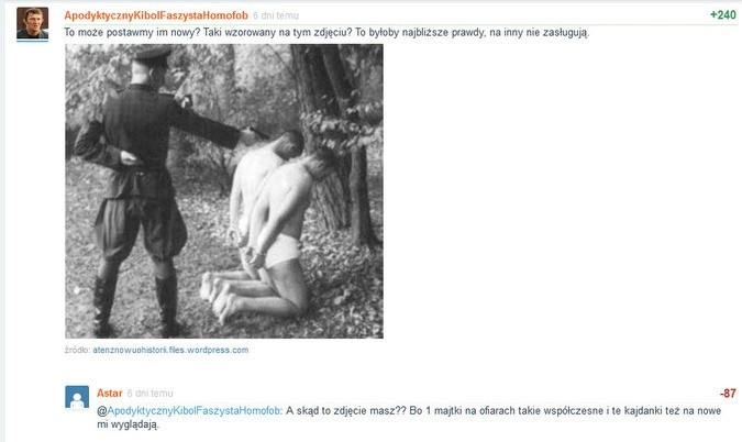 — Так, может, поставим им новый памятник? Такой, как на этом фото? Это было бы ближе всего к истине, другого они не заслуживают, — предлагает ApodyktycznyKibolFaszystaHomofob.