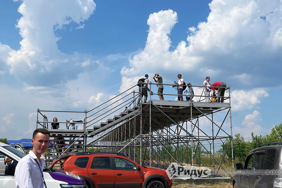 Пресс-платформа, на которую пригласили журналистов для съемки летной программы. На самом МАКС-2021 с нее тоже можно будет посмотреть летную программу, но за отдельную плату