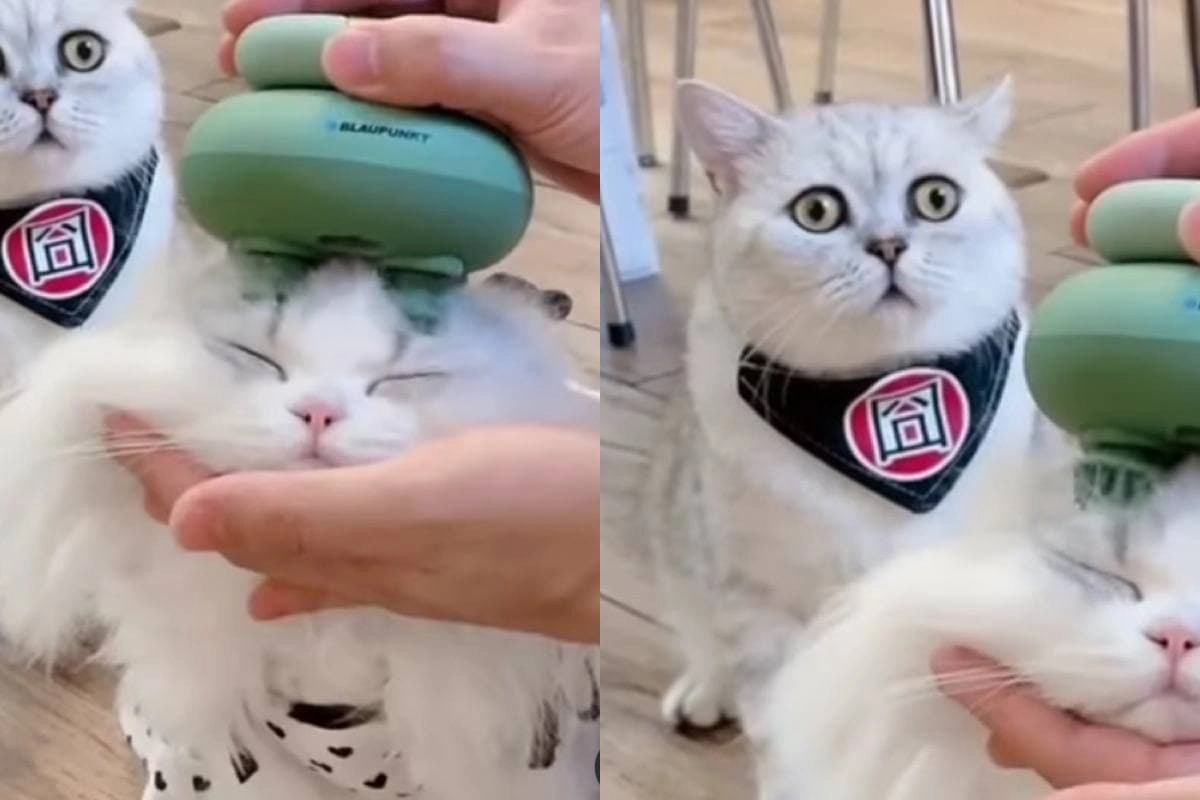 В Instagram набирает популярность ролик с участием двух милых котиков. На кадрах видно, как хозяин делает одному из питомцев массаж головы с помощью специального гаджета, второй же кот с волнением наблюдает за происходящим. И, кажется, он серьезно обеспокоен судьбой товарища.