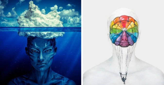«Портреты разума» — проект талантливой британской художницы Эммы Фэй. С помощью боди-арта она создала серию работ, в которых наглядно показала, что творится у людей в голове. В итоге получились очень необычные философские образы, символизирующие человеческие мысли и чувства. Серия работ приглашает зрителей посмотреть на свой собственный образ, восприятие и мировоззрение.