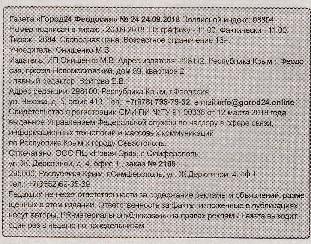 Как указано на обороте следующего выпуска, 1 октября должность главреда уже занимает учредитель «Города 24» Максим Онищенко.