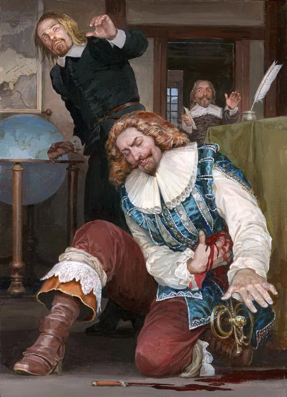 Денис Гордеев. Илл. к роману «Три мушкетера» (Фелтен был посторонним, а не служащим, и сделал это на улице)