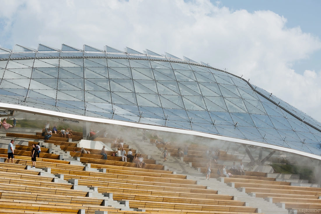 14. Так распыляется вода, чтобы посетителям было комфортнее переносить жару.
