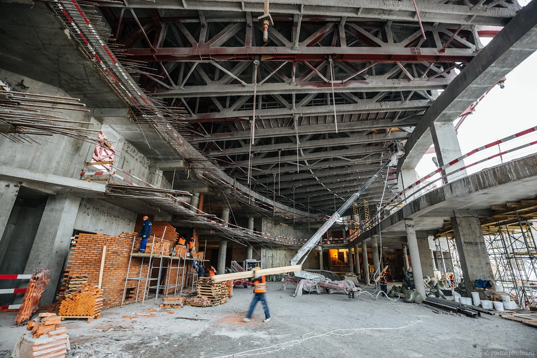 22. Давайте перенесемся в 2015 год. Вовсю идет строительство капитальных зданий парка «Зарядье». Это — будущий вход в концертный зал.
