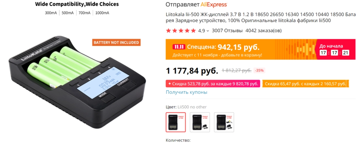 Правда к хорошим аккумуляторам нужно и хорошее зарядное устройство. Но, к счастью, в период распродажи его тоже можно купить совсем недорого.