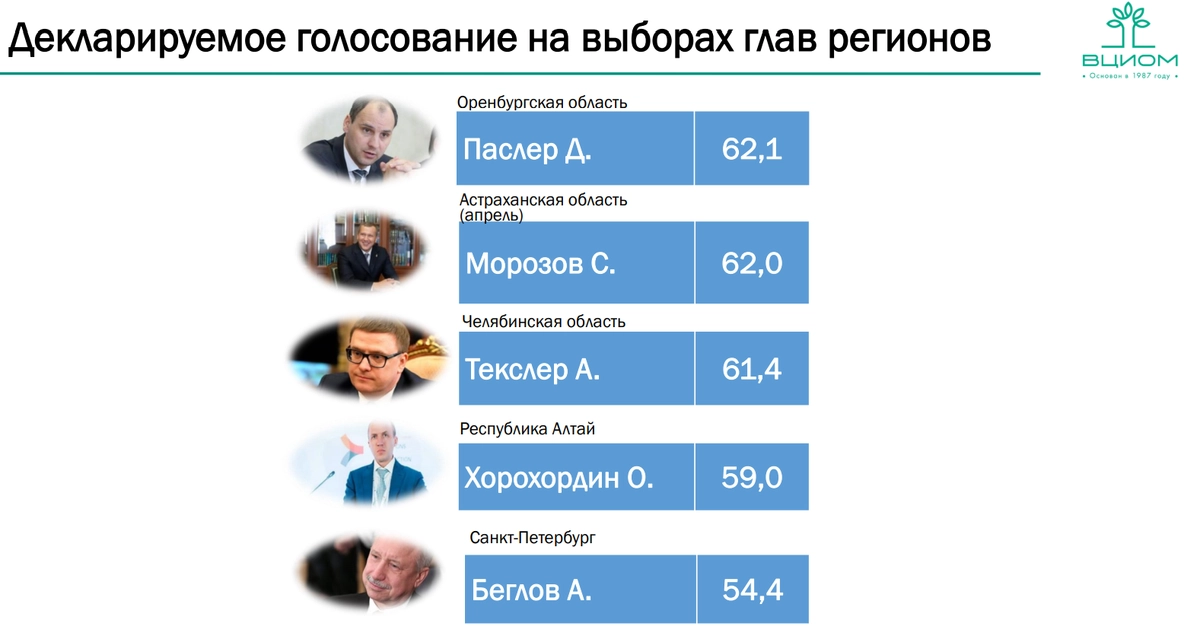 По данным Всероссийского центра исследования общественного мнения (ВЦИОМ), электоральный рейтинг Морозова достигал 62%: