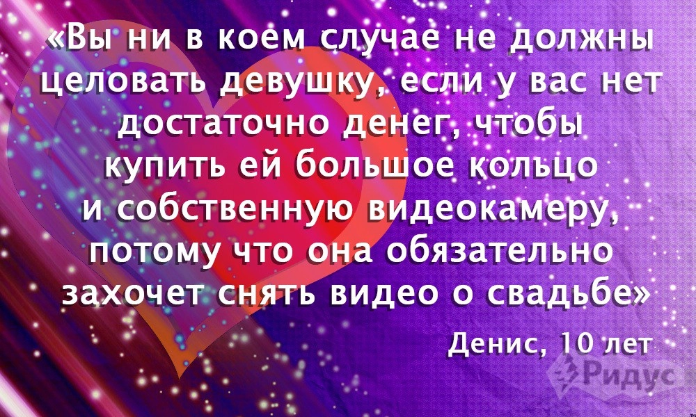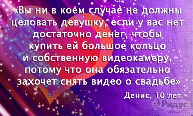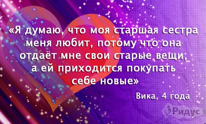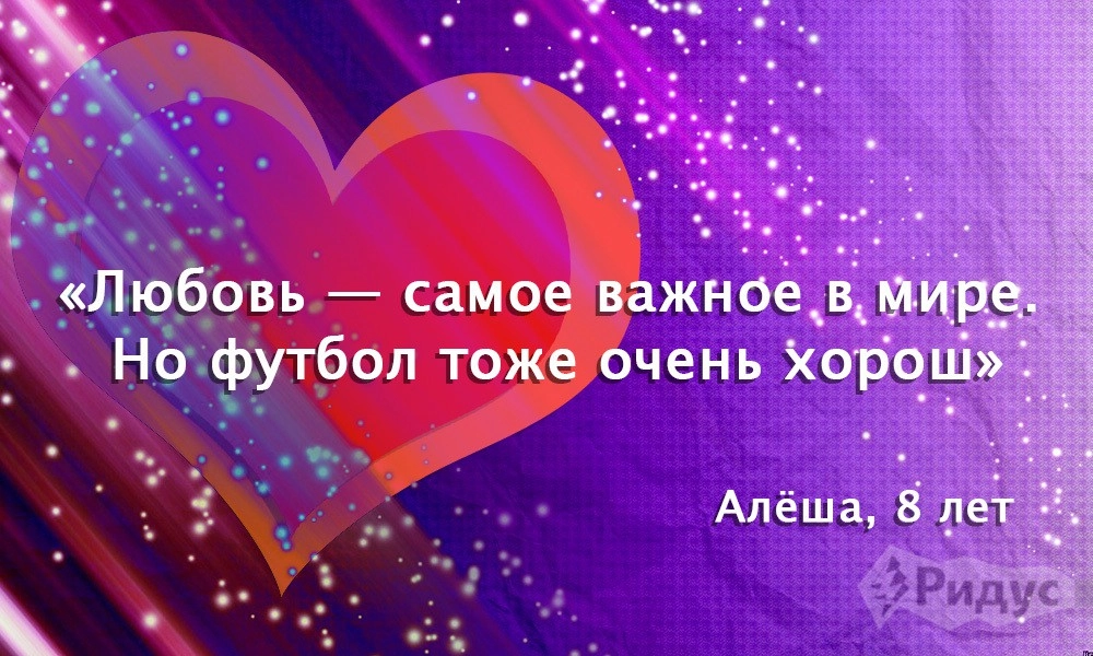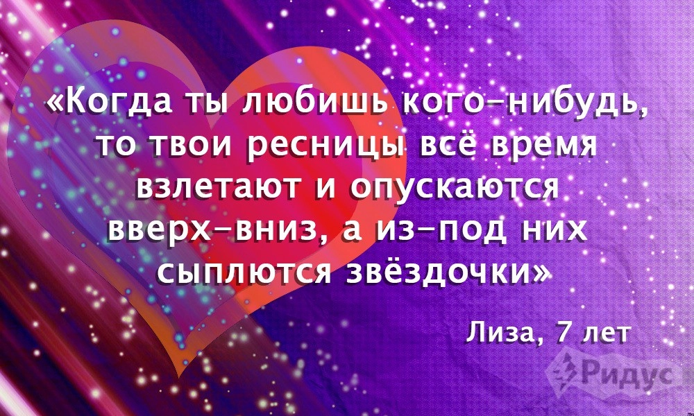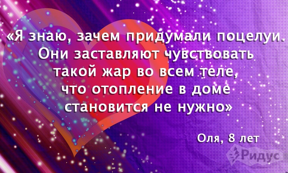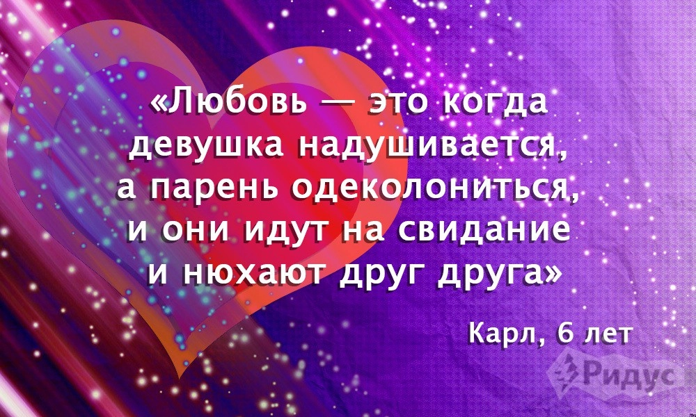 Маленькие дети ещё не умеют врать ради того, чтобы произвести хорошее впечатление. На любой вопрос они отвечают именно то, что думают. Поэтому на вечные вопросы, вроде «зачем мы живём», «что такое добро», «как стать счастливым», отвечают всегда очень честно и нестандартно. На этот раз мы решили спросить у детей «Что такое любовь?» и получили очень смешные и жизненные определения этого прекрасного чувства. Кстати, их можно использовать в качестве готовых валентинок. Улыбнитесь вместе с нами, а потом скажите близким, что вы их любите!