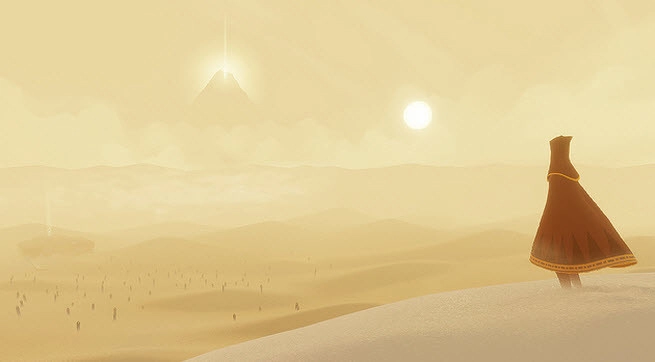 В Journey вам необходимо идти через пустыню к таинственной горе. Для нахождения горы у вас нет ни карты ни других подсказок. Во время путешествия вы можете встретить (а можете и не встретить) другого игрока, который тоже ищет гору. Вы не сможете общаться с ним, не узнаете его имя, ник, пол, сколько ему лет… всё что вы будете знать о нём — только то, что это тоже человек. Но вы сможете различным образом помогать друг другу или просто разбежаться, а возможно, потеряться и никогда больше не найтись. И, если честно, очень сложно делать обзор на игру, которая для каждого человека раскрывается по своему.