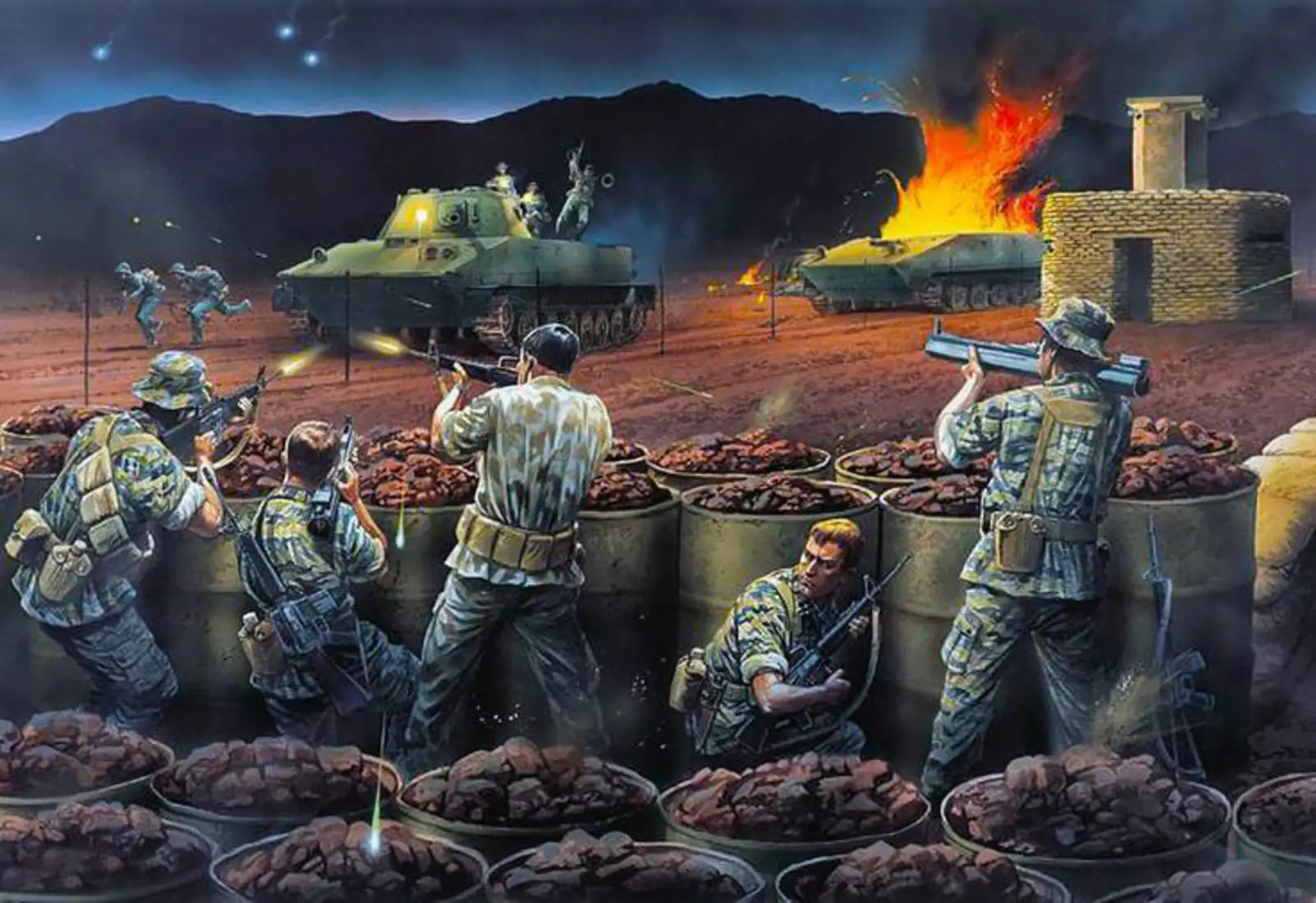 Бой за Ланг-Вэй стал первым сражением в Южном Вьетнаме, в котором Народная армия Вьетнама применила бронетехнику — советские плавающие танки ПТ-76. Современный рисунок изображает борьбу спецназовцев с этими танками в бою за базу Ланг-Вэй