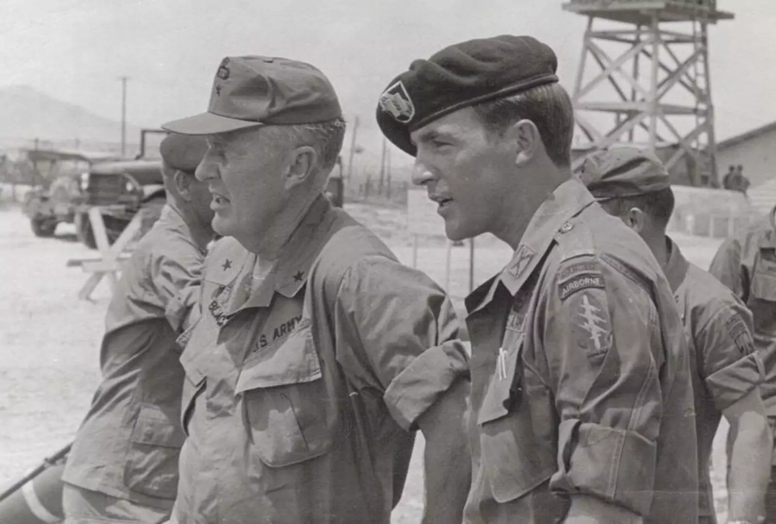 Капитан «Зелёных беретов» Дэвид Карр и генерал Дон Блэкбёрн в феврале 1970 года. На плече у Карра хорошо видно общую эмблему сил специальных операций
