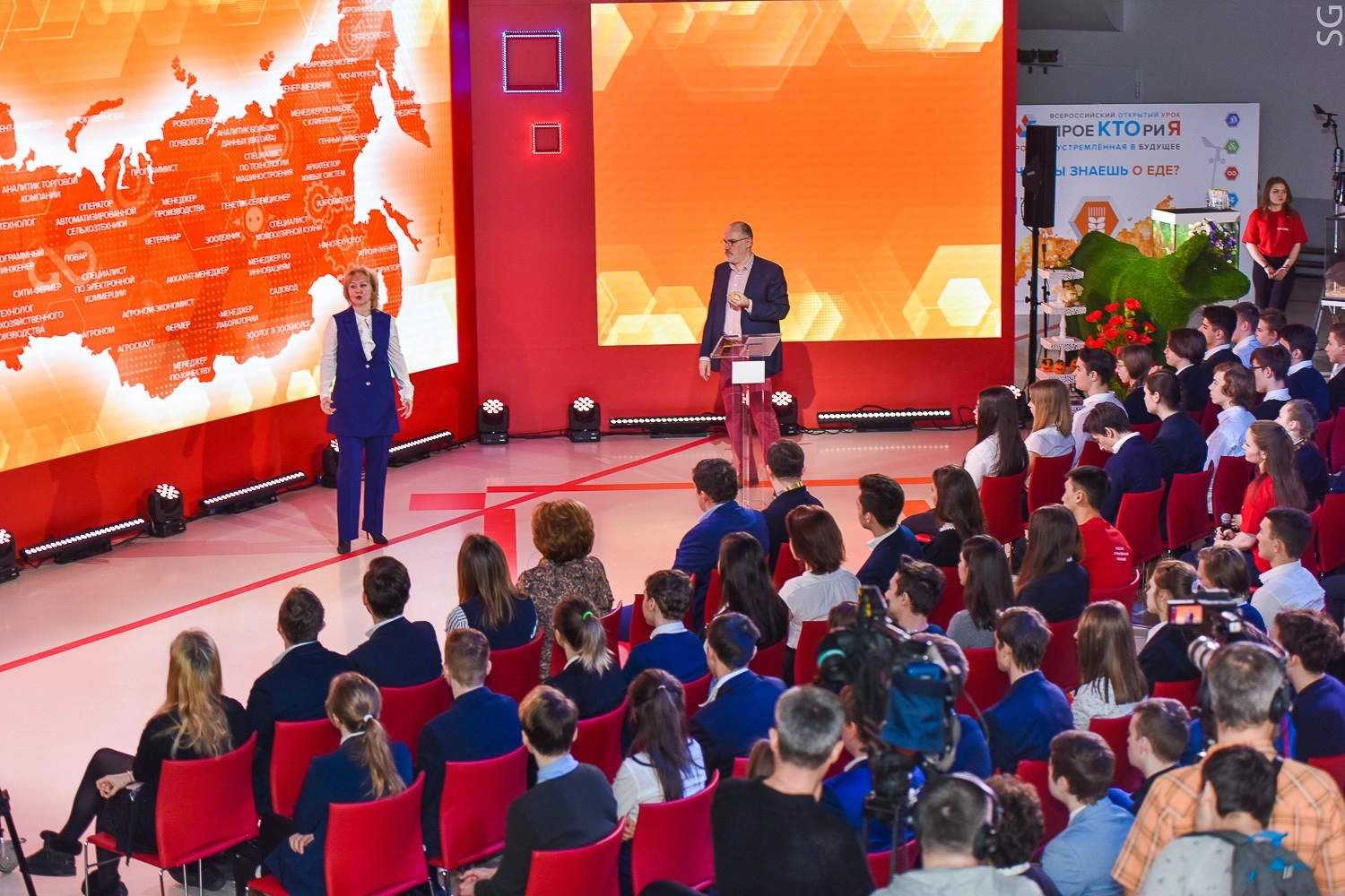Модератором открытого урока выступил промышленный дизайнер и футуролог Владимир Пирожков — вместе с приглашенными экспертами он поведал школьникам о востребованных и исчезающих профессиях, инновациях в сельском хозяйстве и необходимых настоящему специалисту знаниях.