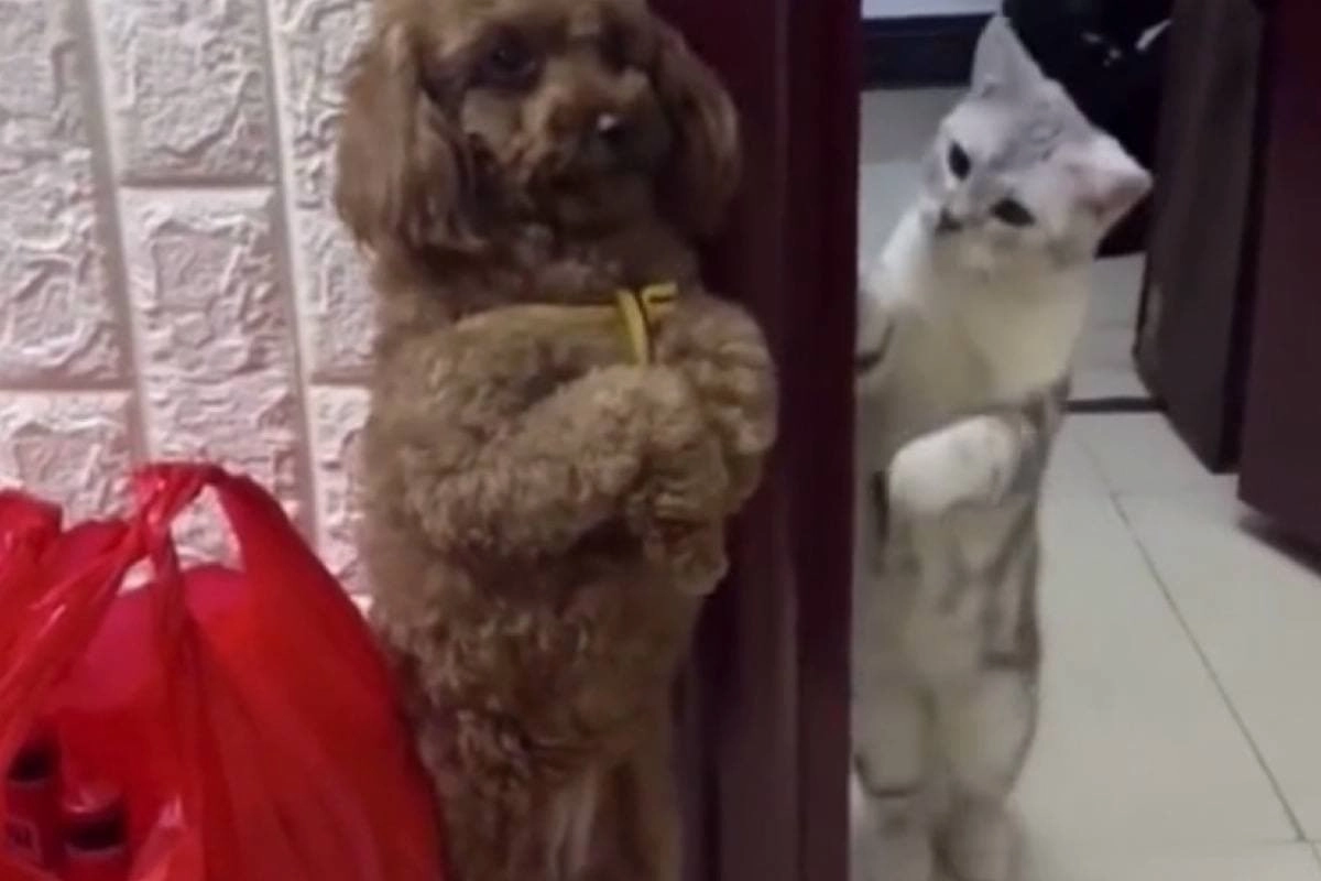 «Что в пакете, кудрявый?»: запугавший пуделя кот попал на видео