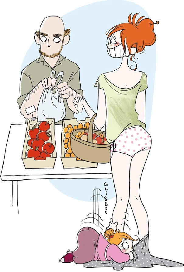 Какая работа может считаться самой трудной в мире? Шахтёр, пожарный, президент? Французская художница Натали Жомар (Nathalie Jomard) уверена, что самая сложная и ответственная работа на свете — это быть родителем. Иллюстрации Натали честно и с юмором показывают, какие перемены приносят в жизнь взрослых дети. Ребёнок меняет не только внешность мамы, но и весь жизненный уклад, ещё будучи у неё в животе. А когда маленький сорванец родится, очень актуальными для родителей станут поиски ответов на вопросы «Как заставить ребёнка есть?», «Почему он орёт?», «Как выспаться?» и «Телефон упал в унитаз, что делать?».