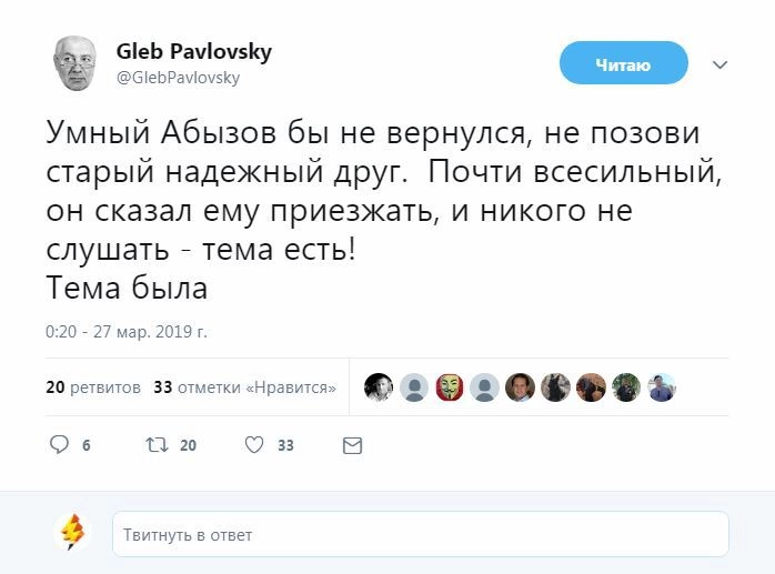 Новость о задержании экс-министра вызвала заметный общественный резонанс, который журналисты дополнительно подогрели, наградив Абызова званием «самого сексуального политика России» и сравнив с отбывающим срок заключения бывшим министром Минэкономразвития Алексеем Улюкаевым и арестованным сенатором Рауфом Арашуковым.