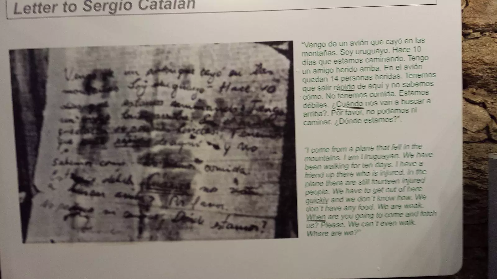 «Я выбрался из самолета, разбившегося в горах. Я уругваец. Мы идем уже десять дней. Там вверху у меня раненый друг. В самолете остаются еще 14 раненых. Нам нужно выбраться быстро, но мы не знаем, как. У нас нет еды. Мы очень ослабли. Когда отправятся искать нас там, наверху? Пожалуйста, мы не можем больше идти. Где мы находимся?», — такое сообщение отправил ему Паррадо.