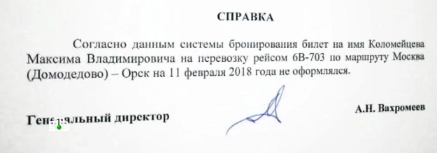 В ответ на запрос НТВ, бронировал ли Коломейцев перелет на указанную дату, в авиакомпании ответили отрицательно.