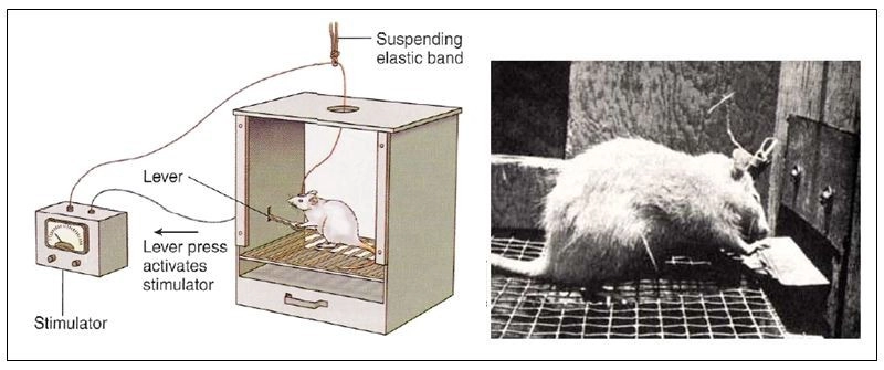 Например, известный эксперимент 1954 года Джеймса Олдсома и Питера Милнера, которые искали центр удовольствия в мозге крыс. Лабораторным грызунам вживляли электроды в септальную область (она же — центр удовольствия). После этого они начинали нажимать и нажимать на педаль, потому что это порождало у них в голове такой кайф, с которым были не сравнимы ни сон, ни еда.
