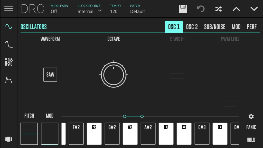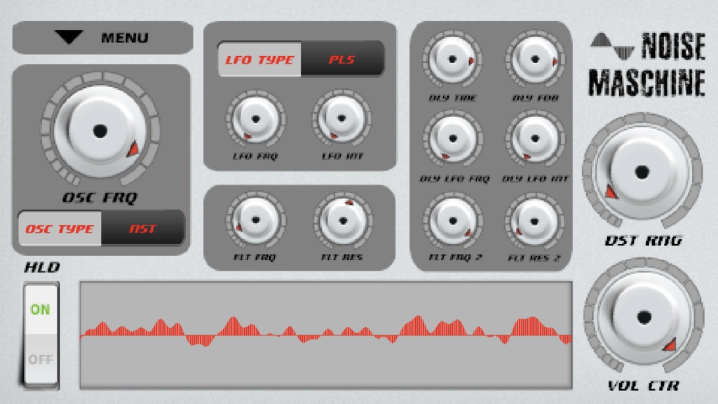 Очень интересный синт. Генерирует шум, помимо этого стандартные волны: от синуса до меандра. Интерфейс хоть и простой, но очень привлекательный.