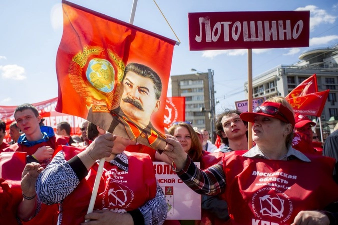 Сторонники Коммунистической партии России (КПРФ) отмечали праздник Весны и Труда отдельно от главного шествия на Красной площади. Колонны коммунистов прошли от Калужской площади до Театральной, где состоялся митинг.