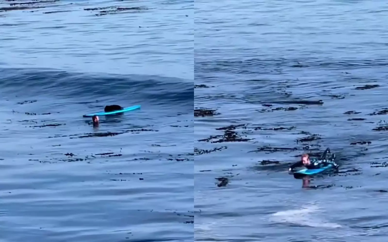 «Дай сюда»: беременная выдра отняла доску у серфера, чтобы немного отдохнуть