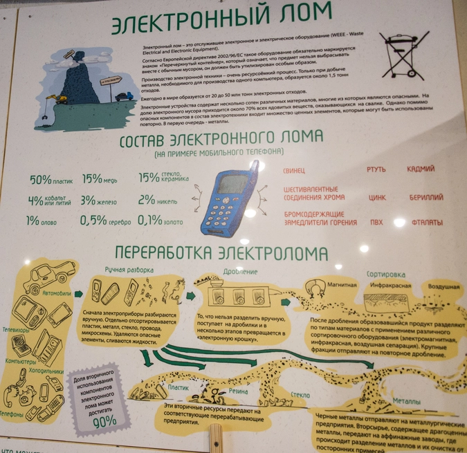 Экологи же, однако, сообщают, что этот вид отходов выбрасывать с общим мусором категорически не желательно. Их доводы логичны — всем известно, что в электронике, во-первых, содержится множество металлов, от сравнительно дешевых — меди и железа, до драгоценных — серебра и платины, а, во-вторых, могут содержаться и опасные для здоровья, например, свинец и кадмий.