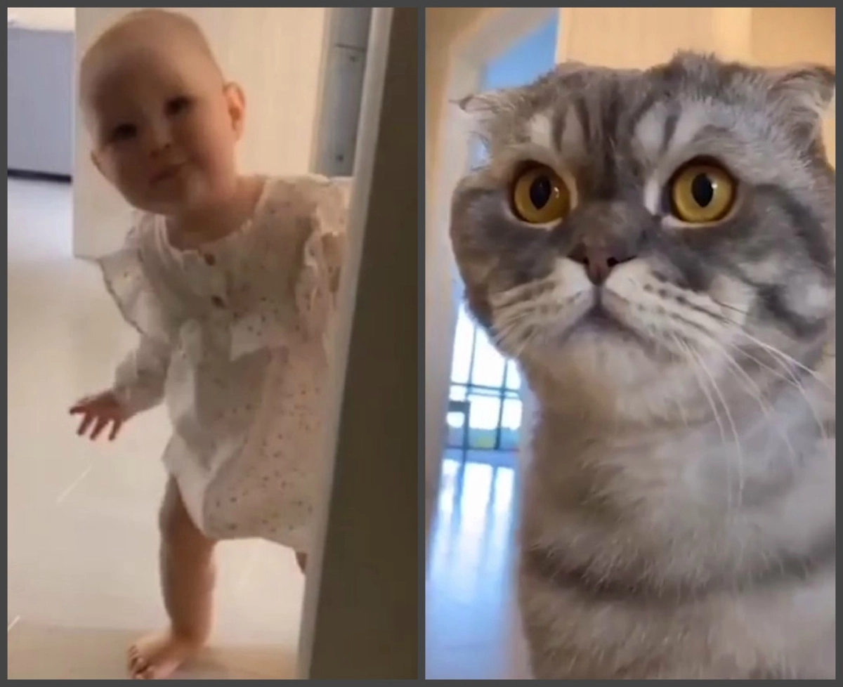 «Дай я тебя потискаю!»: малышка, преследующая кота, развеселила Сеть