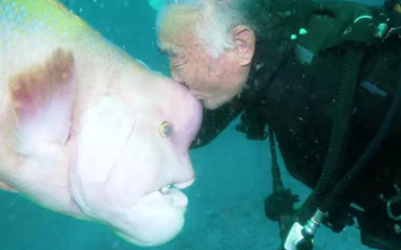 Дайвер более 30 лет дружит с рыбой, которую он выходил после ранения