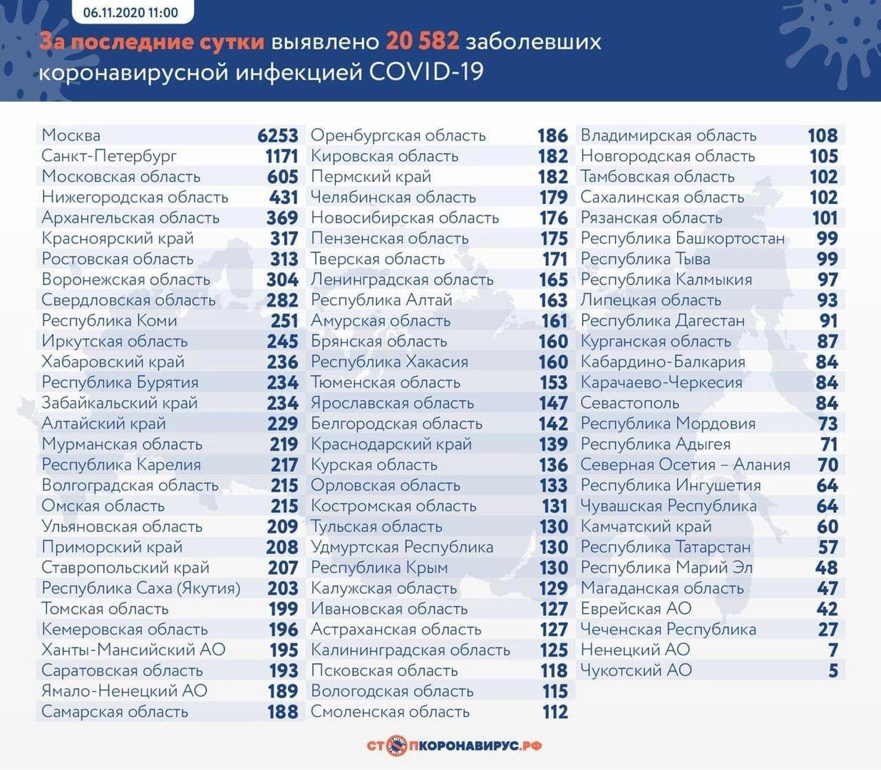 Тем временем в России за прошедшие сутки зафиксировано 20 582 новых случая заражения коронавирусной инфекцией. Это новый рекорд по числу заболевших. За сутки скончались 378 человек, об этом информирует оперативный штаб по борьбе с распространением пандемии COVID-19.