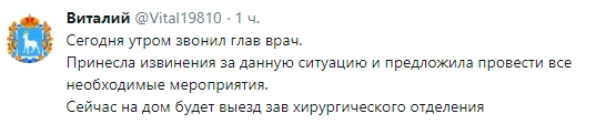 После этого пациент сообщил, что главный врач извинилась за инцидент и «предложила все необходимые мероприятия».