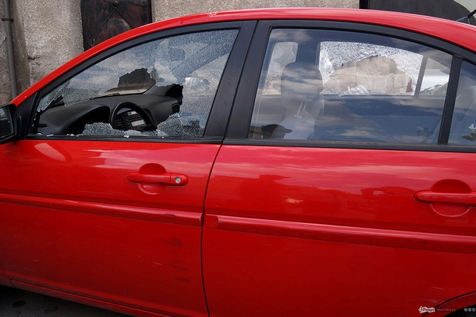 Снимаю и иду дальше - к месту падения других снарядов. Новые согласования с дружинниками. Через 2 минуты тут же случайно появляется живущий в пострадавшем квартале мой знакомый: сын хозяина микроавтобусов, на которых я возила по стране туристов и журналистские группы. Вместе отправляемся в глубину квартала. Осматриваем кучу поврежденных автомобилей (всего пострадало 15 машин, в том числе, тот самый мини-ван, на котором я неоднократно ездила с туристами и журналистами), раздолбанный продуктовый магазинчик. Стекла некоторых домов выбиты осколками. Сегодня - очередной День стекольщика.