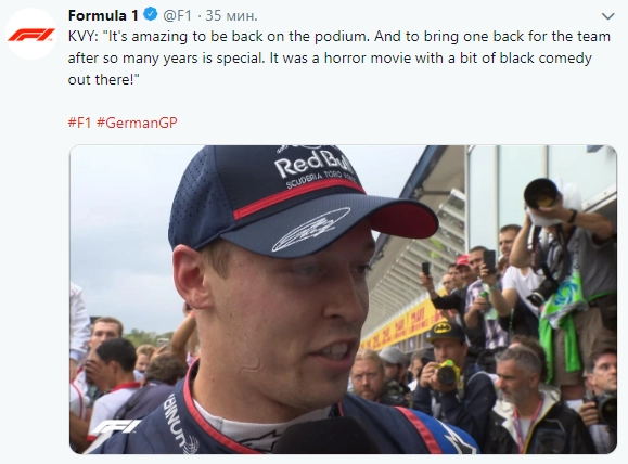 На Гран-при Германии Квят уступил только победителю гонки Максу Ферстаппену из Red Bull и занявшему второе место Себастьяну Феттелю из Ferrari.