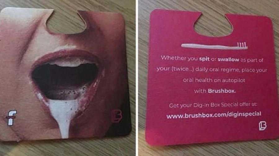 В Великобритании студенты-первокурсники Сассекского университета получили рекламные буклеты компании Brushbox. «Неважно, плюешь ты или глотаешь, не забывай о здоровье полости рта», — говорится в материалах.